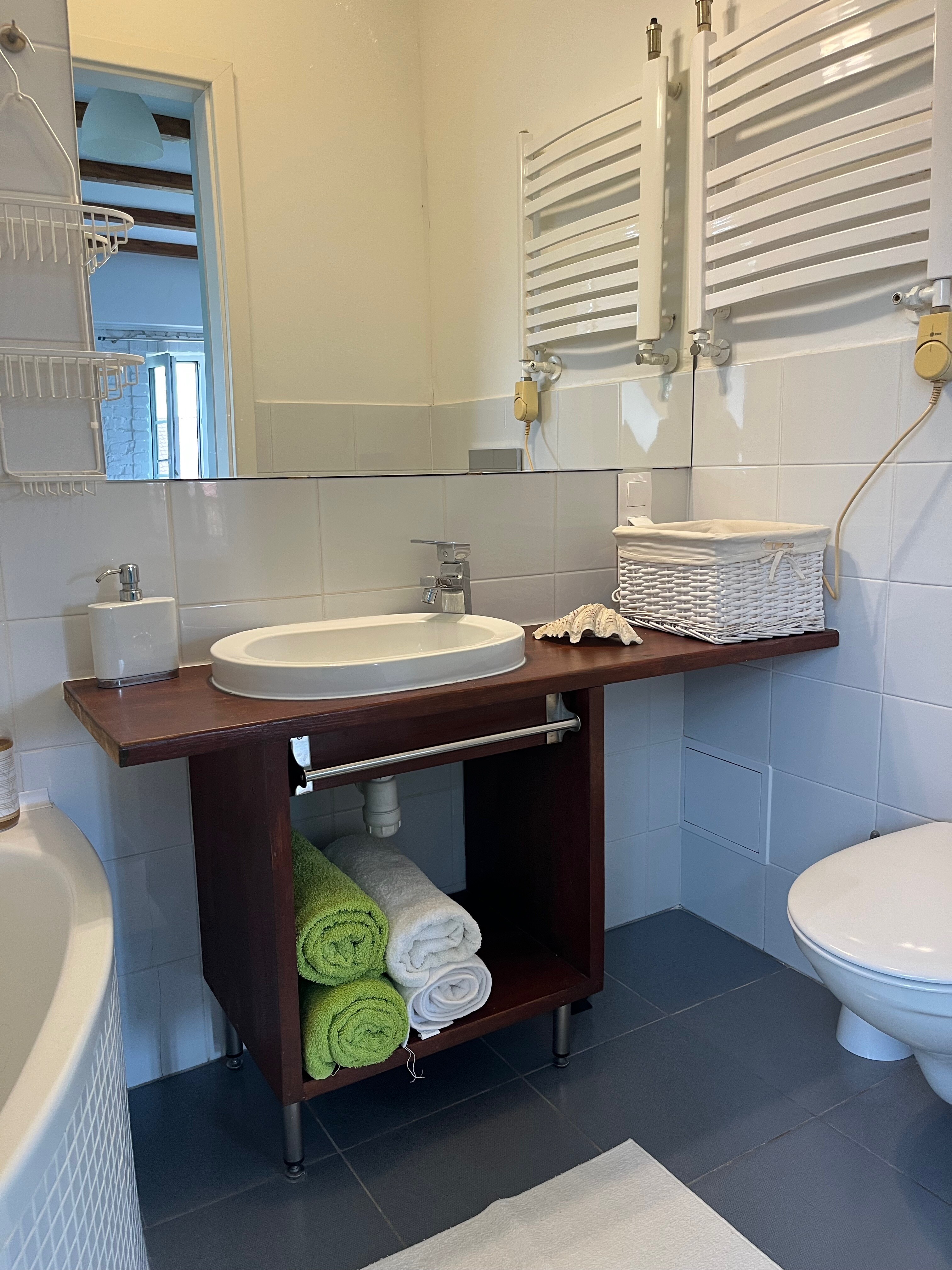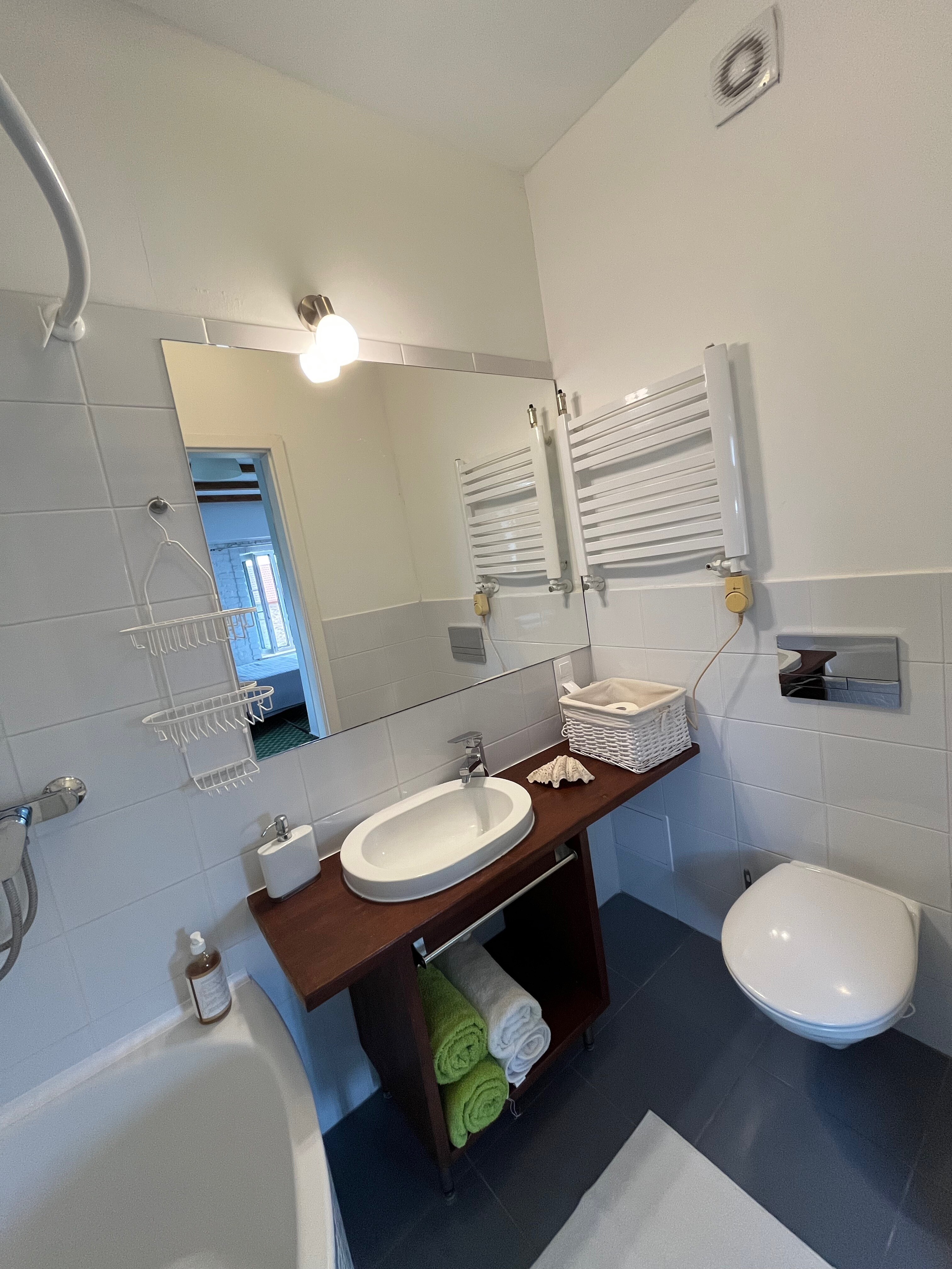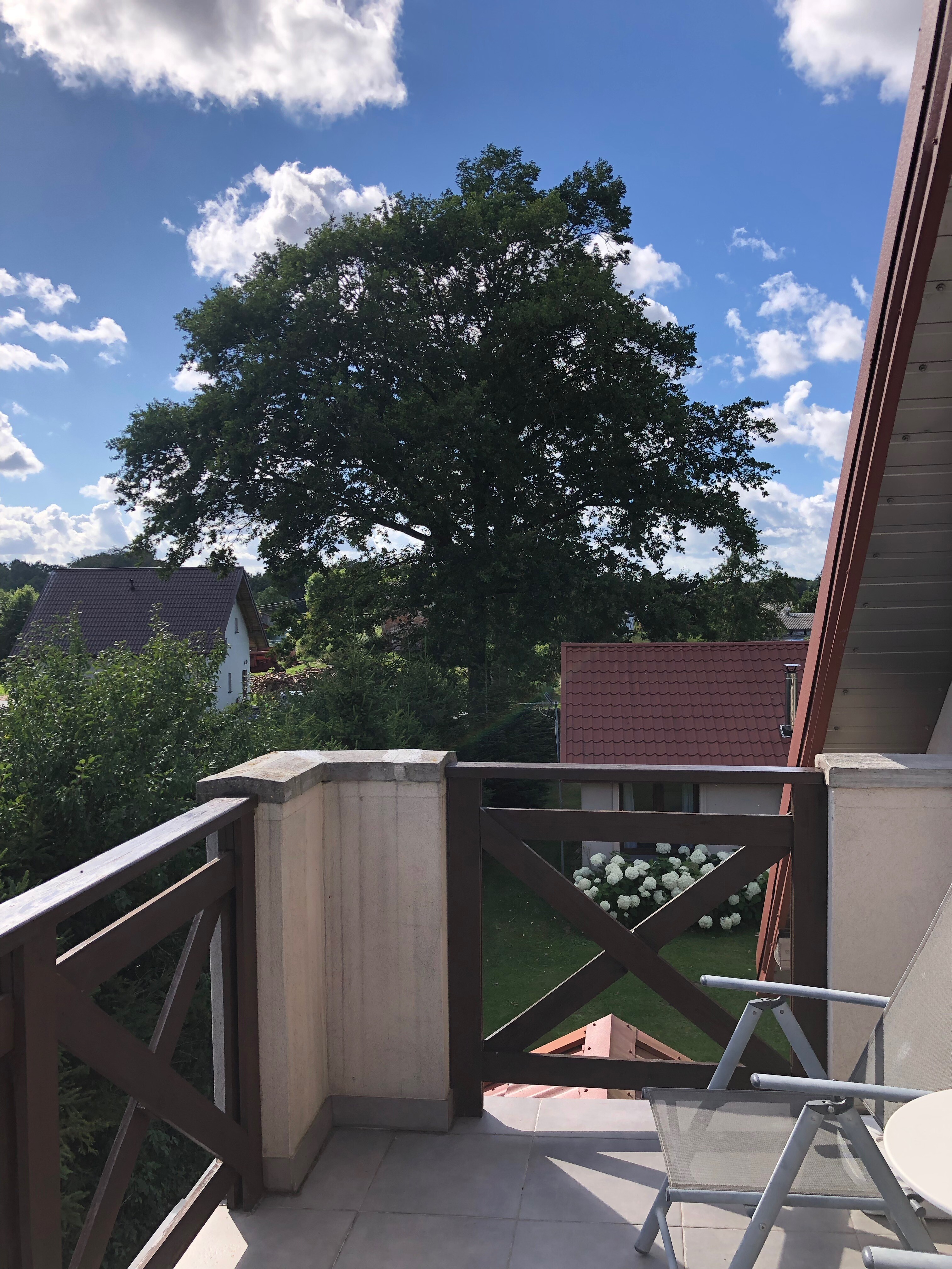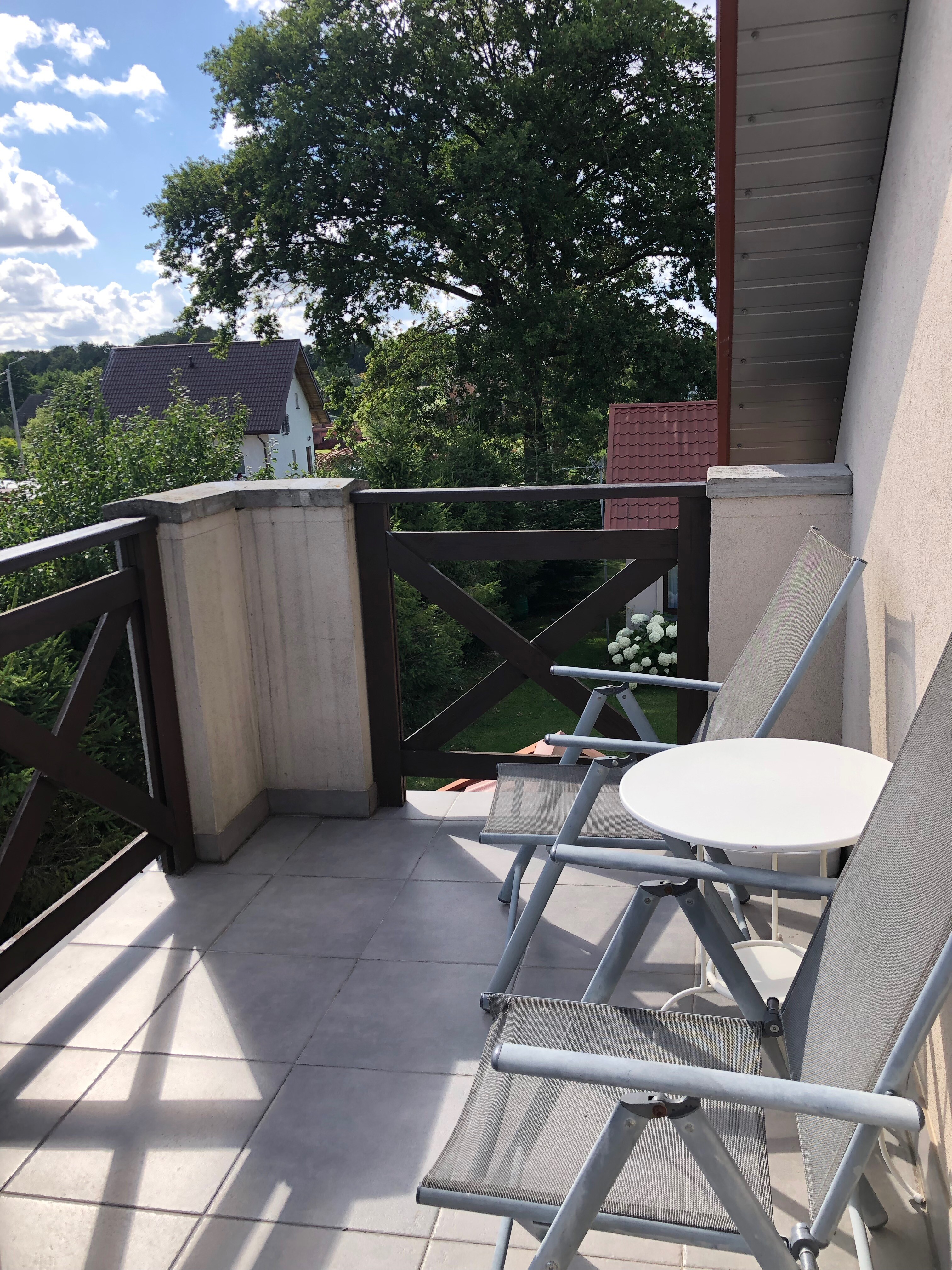 Przytulny i jasny, utrzymany w naturalnych tonach apartament dla czterech osób. Składa się z dwóch osobnych pokoi, nowoczesnej łazienki oraz prywatnego tarasu z widokiem na kaszubską wieś i bocianie gniazdo.