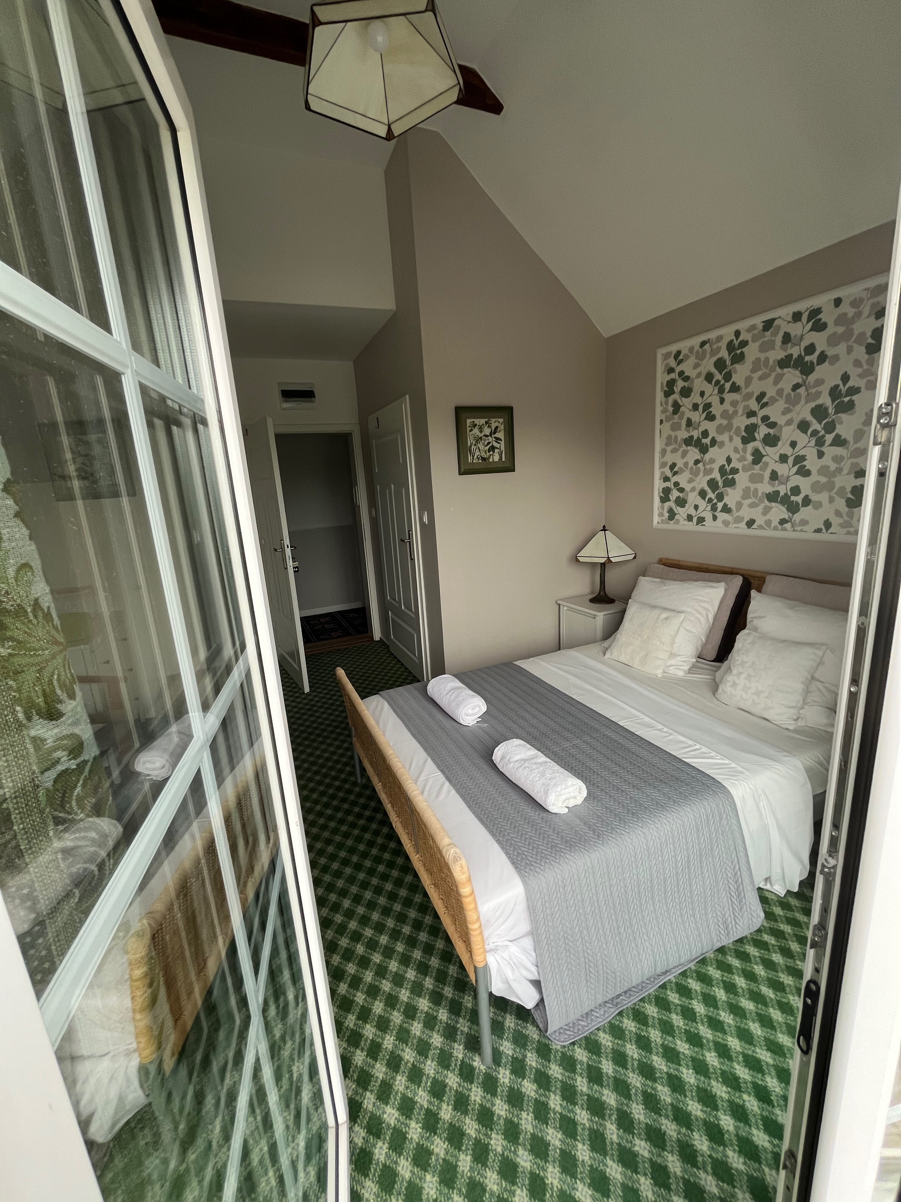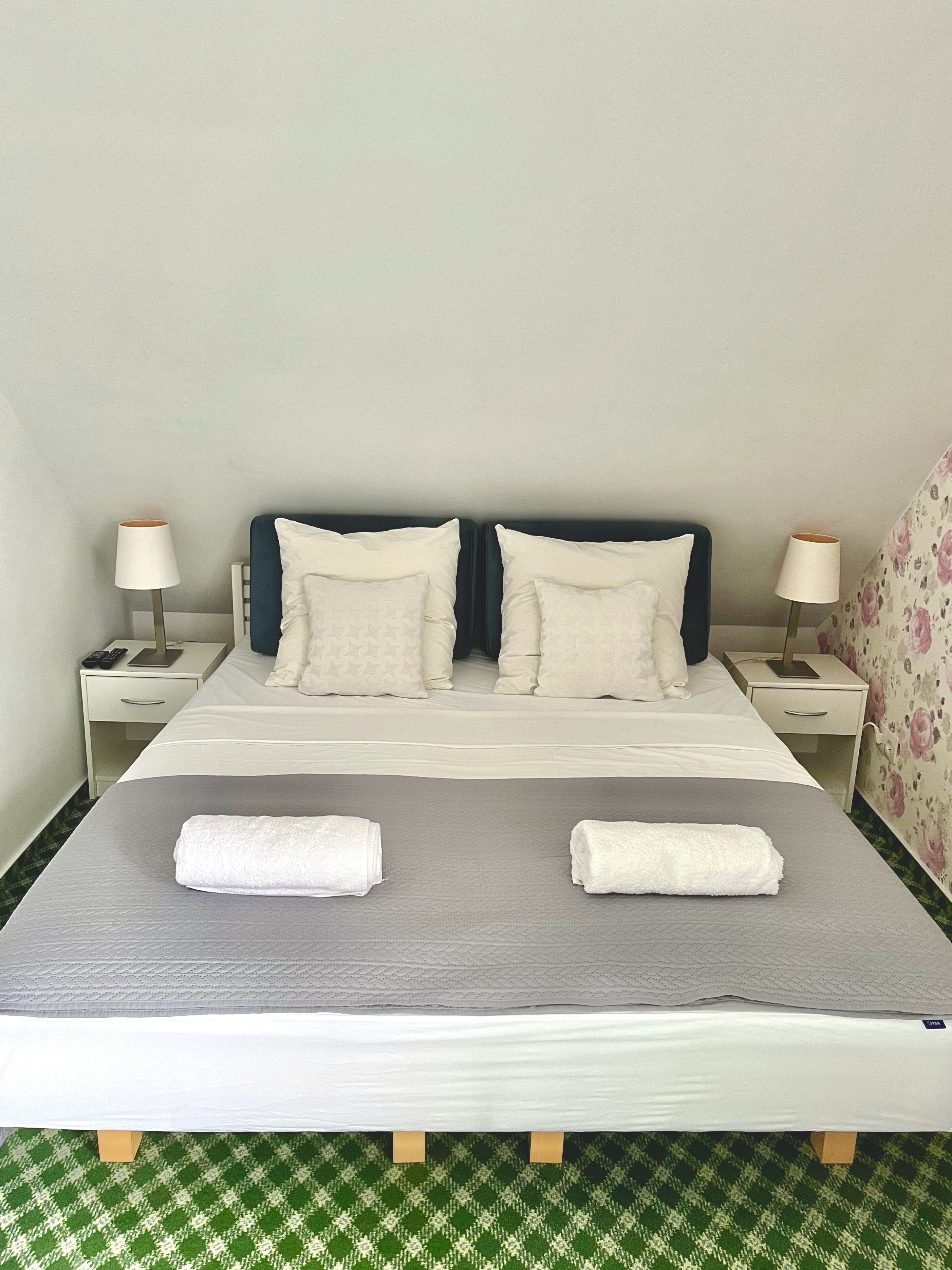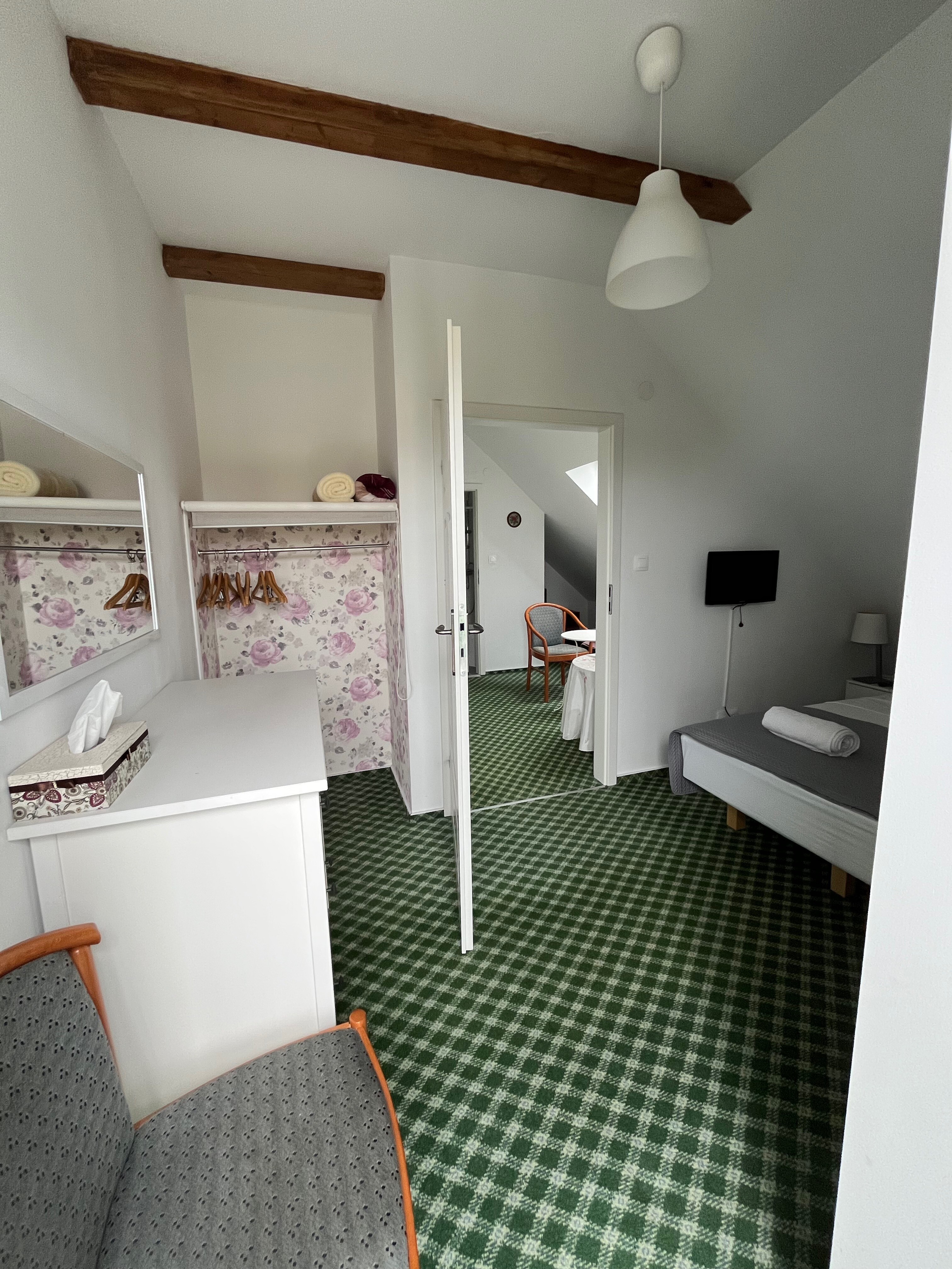 Przestronny, dwuosobowy pokój utrzymany w kojących, naturalnych tonacjach. Wyposażony w wygodne łóżko, przestronną szafę na ubrania oraz prywatną łazienkę z prysznicem. Goście mają do dyspozycji bezpłatne Wi-Fi, które umożliwia wygodną pracę zdalną lub relaks przy ulubionym serialu.