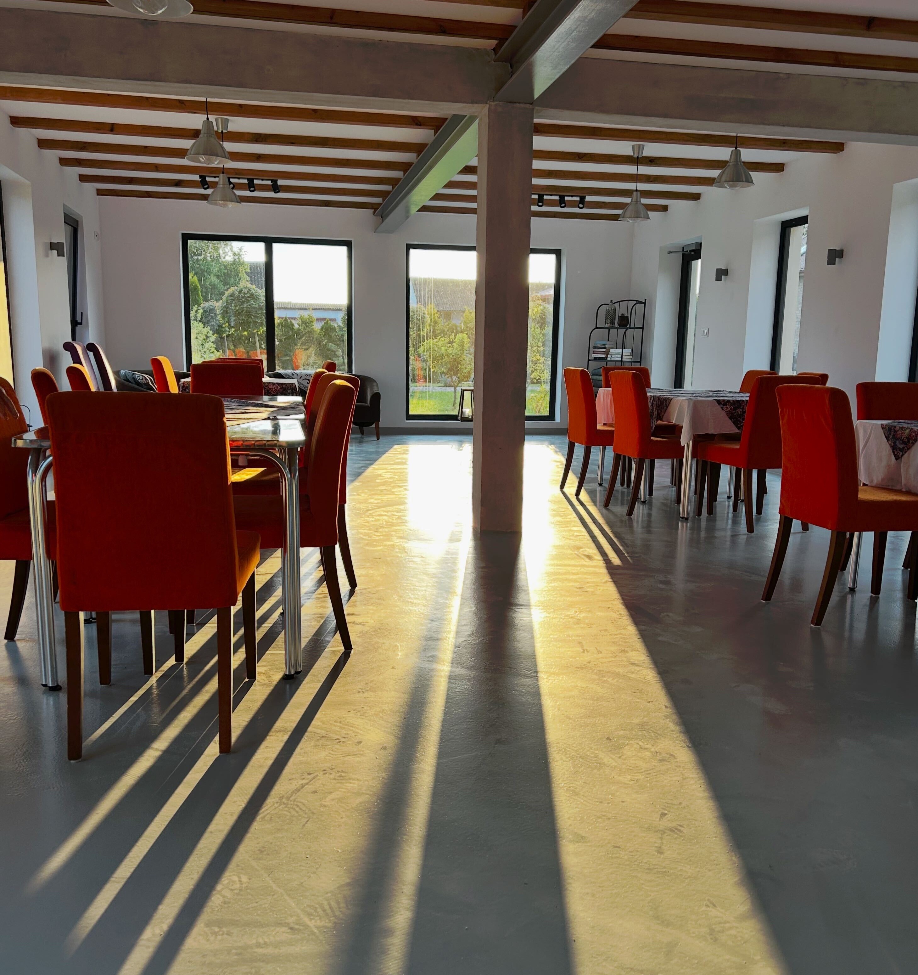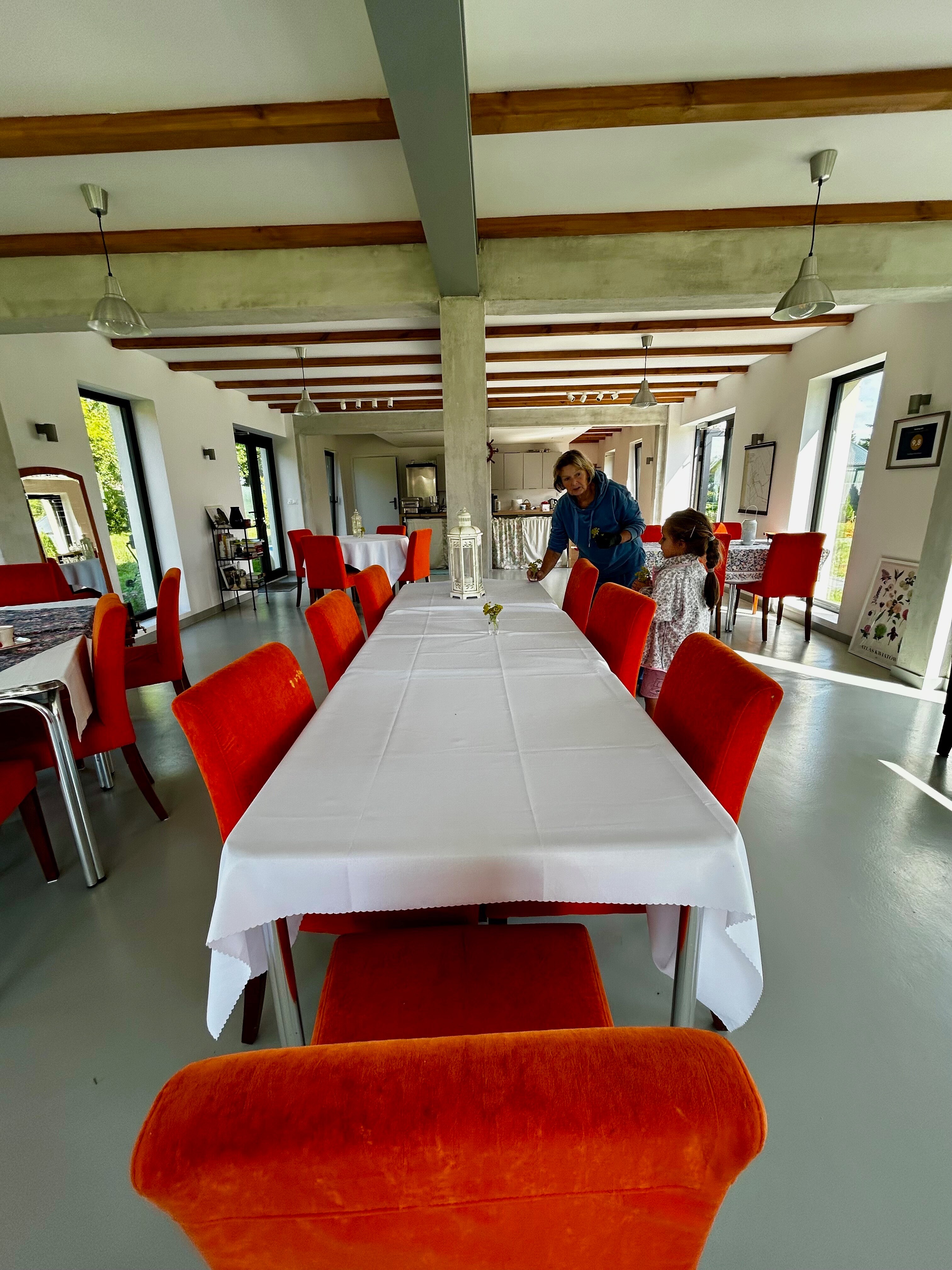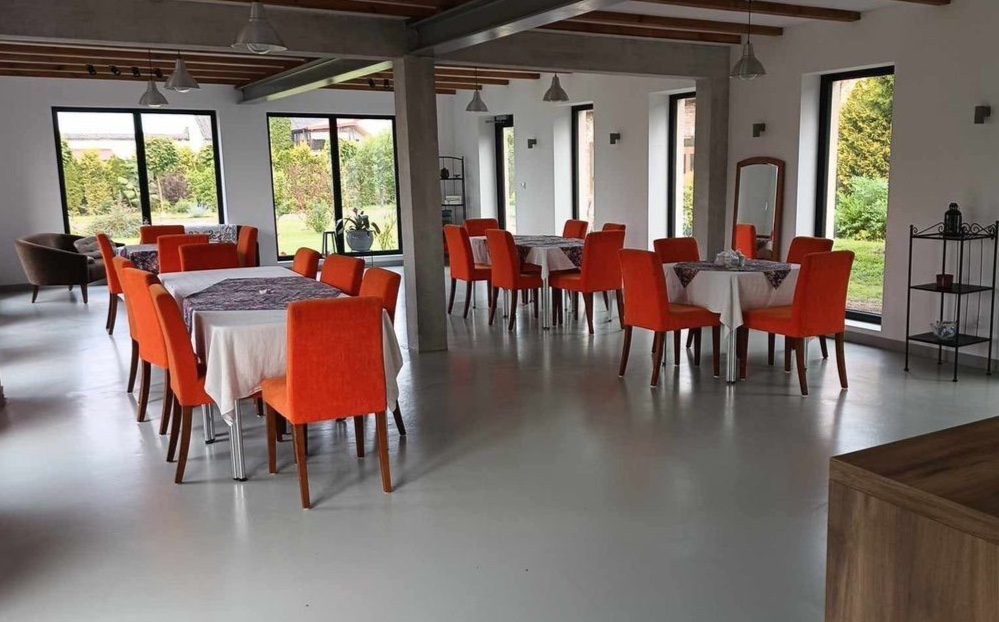 Zbożownia to nasza przestronna jadalnia dla 40 osób, zaprojektowana z myślą o wspólnym celebrowaniu posiłków – zarówno codziennych, jak i tych wyjątkowych.