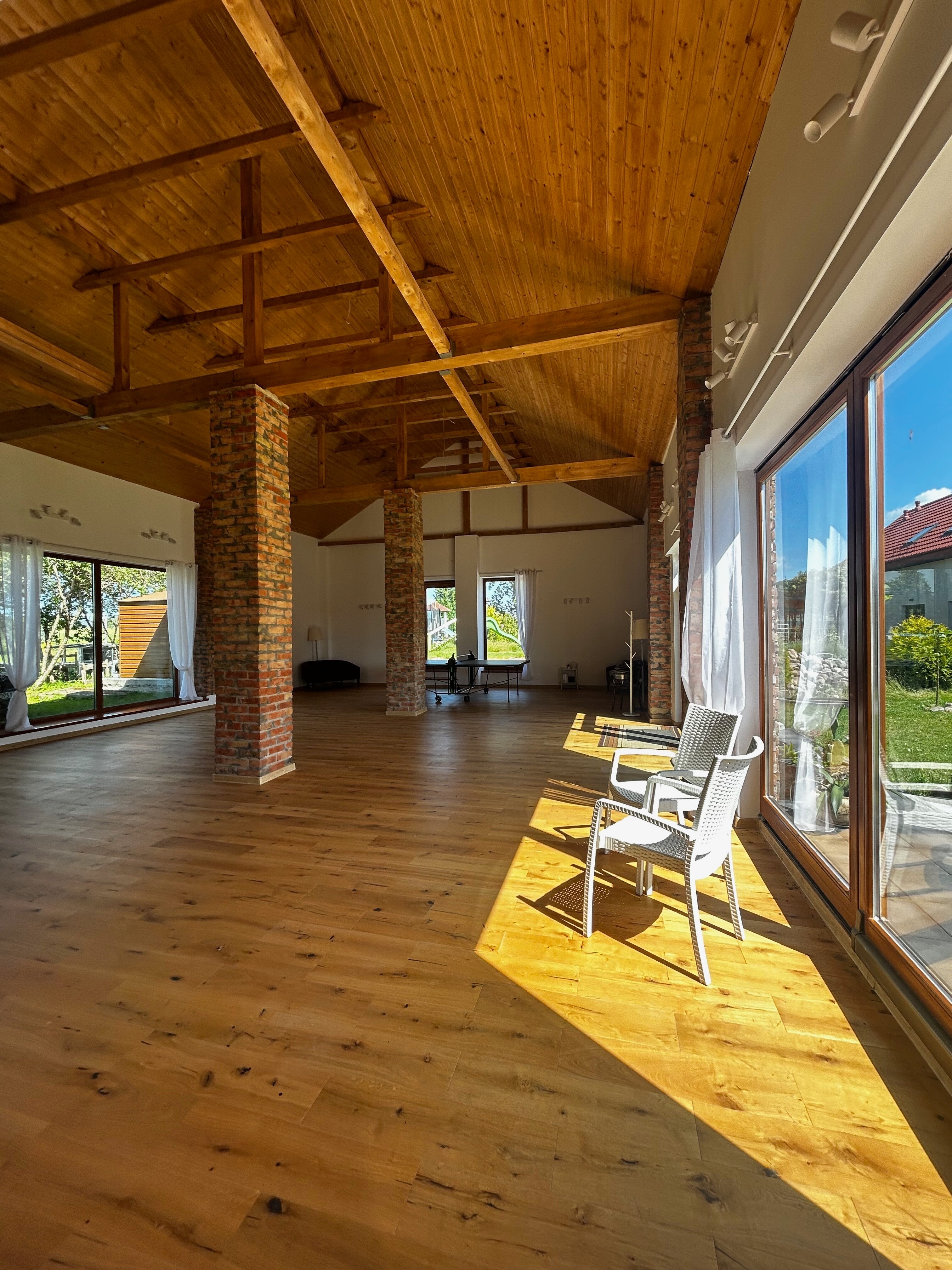 Nasza odrestaurowana stodoła z czerwonej cegły to wyjątkowa przestrzeń o powierzchni 160 m², stworzona z myślą o ruchu, oddechu i wspólnym byciu.