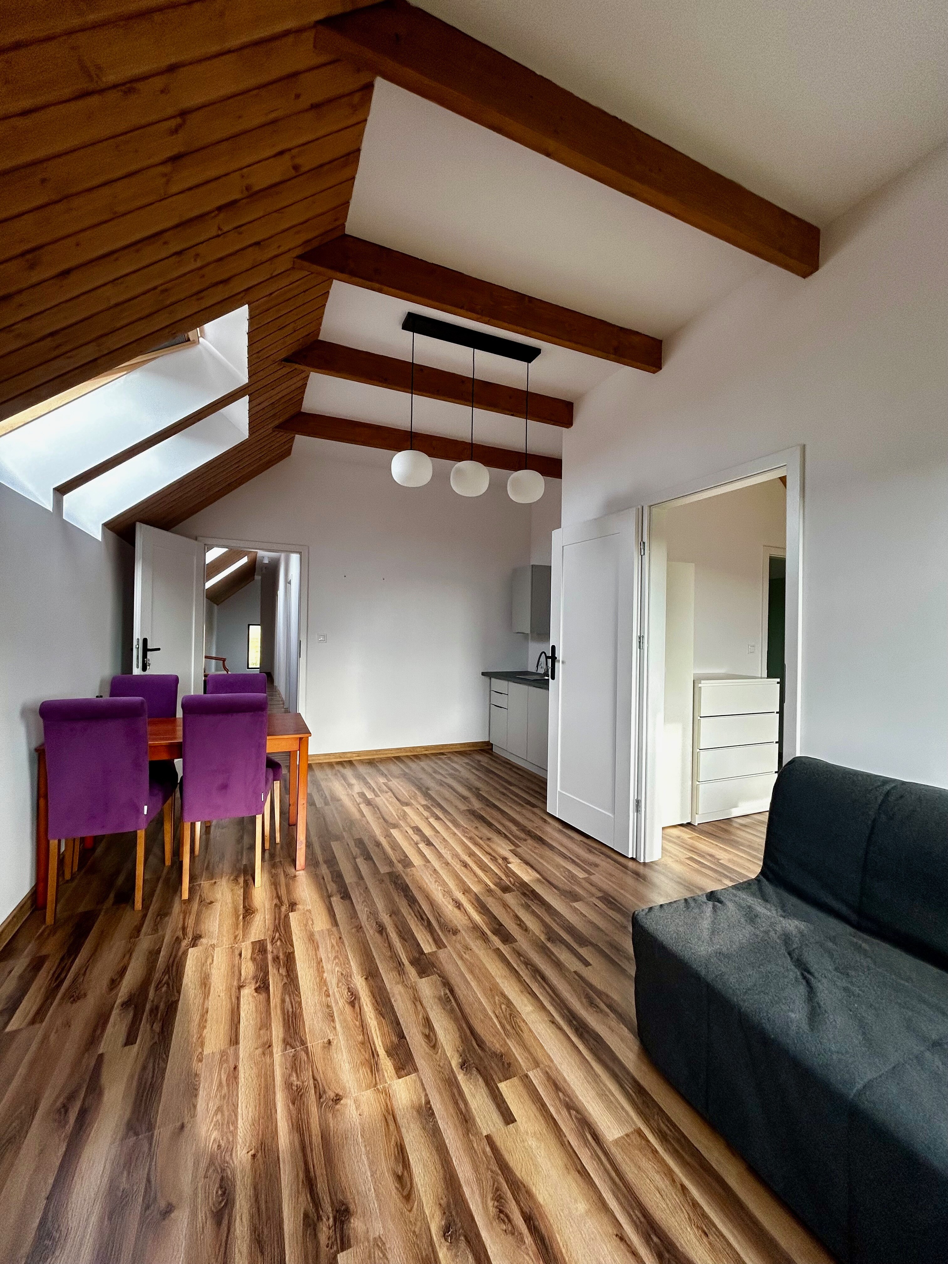 Przytulny i jasny, utrzymany w naturalnych tonach apartament dla czterech osób. Składa się z dwóch osobnych pokoi, nowoczesnej łazienki oraz prywatnego tarasu z widokiem na kaszubskie pola i łąki. To idealna przestrzeń do wypoczynku w rytmie natury. Goście mają dostęp do wspólnego aneksu kuchennego z częścią jadalnianą i strefą relaksu – wszystko na tym samym piętrze.